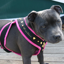 Diamond är en lugn och trevlig tik. Hon älskar att gå ut på promenader, cykla och dra kärra. Ute när hon får springa fritt, då är hon så otroligt lycklig. Det är det bästa hon vet.