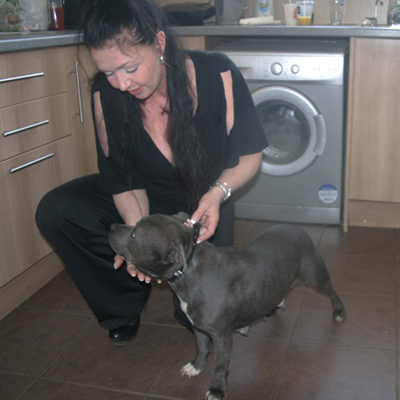 Jag heter Lena och tillsammans med min man Mikael planerar vi uppfödning av Staffordshire Bullterrier. Vi har två unghundar idag. vi har själva importerat dem från England för att de har den vackra färgen "Blue".