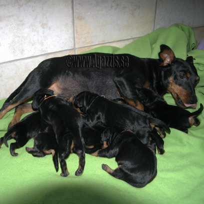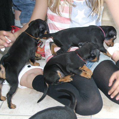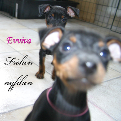 Föddes 2013-03-29. På självaste Långfredagen och början på påskafton ville de ut. Vilket kanske var skönt för Queen som såg ut som hon hade svalt en rugbyboll som landat på tvären i magen. Åtta underbara valpar. Fyra hanar och Fyra tikar. Det är inte vanligt med så stora kullar på en dvärgpinscher snittet ligger mellan 3,5-4 nästan varje år. Sju är inte ovanligt, men jag har inte hört talas om någon annan uppfödare som fått åtta valpar. Här på E-Kullens egna sida kommer du kunna följa hela valptiden.