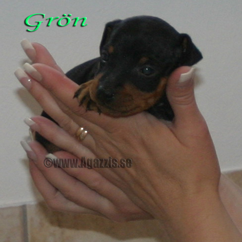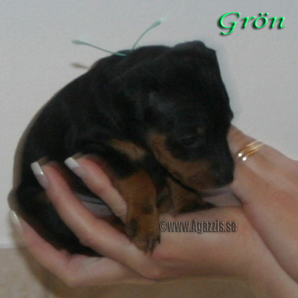 På tisdagsmorgenen vaknade jag av ett pipande. Då hade första valpen tagit sig ur lådan själv och han har förgen Grön. I mitten av veckan började de gå mycket bättre. När Stefan var här körde de på mest baklänges. Nu i slutet av veckan går de på riktigt bra. På fredagen möblerade jag om och gjorde lite förändringar. Dammsugaren var de inte så förtjuta i, men de vänjer sig. I alla fall så tog jag fram det lilla katthuset och när de hittade det var lyckan gjord. Det är ju inte stort, men nu är det ju nästan det. Vänjer de sig att sova därinne kommer de få problem om några veckor. Idag på fredagen när jag gjorde om hände det massor. Nu tar de sig ut ur lådan ganska bra. De vaknar, tar sig ut och kissar utanför. Glädjande att de börjar vilja gå ifrån sovplatsen.
