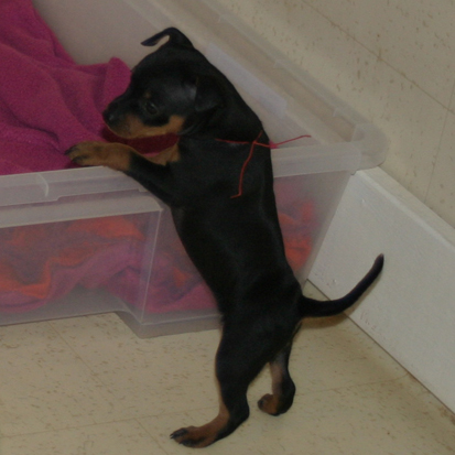 De växer mycket valparna och alla har ju öppnat ögonen och börjar röra på sig mer och mer i lådan på andra dagen in i trejde veckan så hade den röda valpen tagit sig ur lådan på kvällen och dagen efter var den rosa ute ur lådan också. Nu blir det till att kolla till ofta för de kommer ur, men de förstår inte än att de ska ta sig tillbaka in i lådan. Nu ligger det även en filt utanför lådan för den brukar de alltid hitta till. De börjar nu lyfta på magen när de går så snart blir det nog fart på dem. I slutet av veckan har alla öppnat ögonen och lyckats ta sig ut ur lådan också.