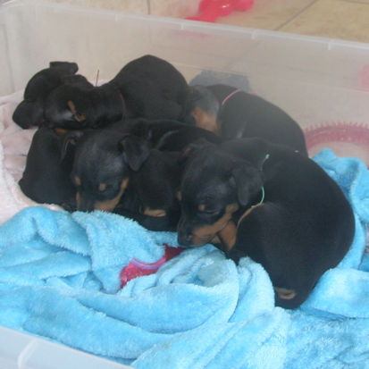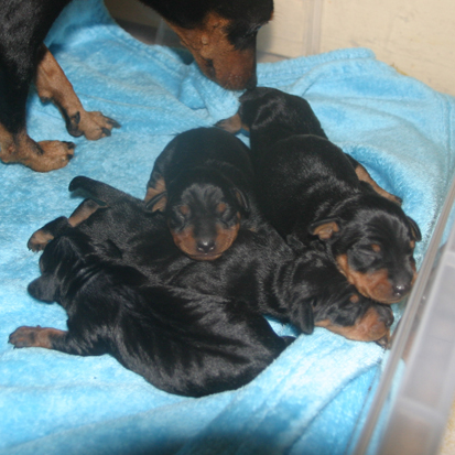 Alla valparna mår bra och alla var ju pigga från början. Vikterna var så lika från början och de har redan gått upp nu på andra dagen. Tänkte ta nya vikter på tredje dagen för det är egentligen efter den dagen som man säger att valparna bör börja gå upp i vikt och alla valpar jag har haft har redan gått upp i vikt då. Alla brukar öka redan första dagen. Det skulle annars kunna vara en indikation på att något inte är rätt. Mamma och valparna mår bra och de kravlar runt bra i lådan.