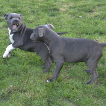 Jag heter Lena och har haft en mindre uppfödning av staffordshire Bullterrier. Det är mycket som har hänt under åren. Jag började med uppfödning av dvärgpinscher och när jag träffade på mitt livs första staffe, så var det kört. En staffe måste jag ju ha! Det blev en och sedan blev det flera. Det hela började med att jag och min f.d man importerade en hane från England. Sedan importerade vi några till hanar och tikar år 2012 samt 2014. Uppfödningen fortsatte med två olika linjer och idag har jag två underbara tikar som nu har parats. Då jag inte har en egen hane kvar har jag länge letat efter passande hanar till mina tikar och hittade två underbara hanar här under hösten. Parningar har nu skett och nu väntar vi på och hoppas det blir valpar till nyår. Hemsidan har inte uppdaterats på flera år då jag blivit översvämmad med mail och haft mycket annat med studier, flytt och allt möjligt. Nu har vi bott in oss i det nya huset och alla bitar i livspusslet verkar falla på plats. Jag har länge haft en lång kölista på valpar och håller nu på med uppdatering av hemsidan som beräknas vara någorlunda klar i slutet av november. Är du intresserad av en valp, hör gärna av dig via mail, eller pröva att ringa.