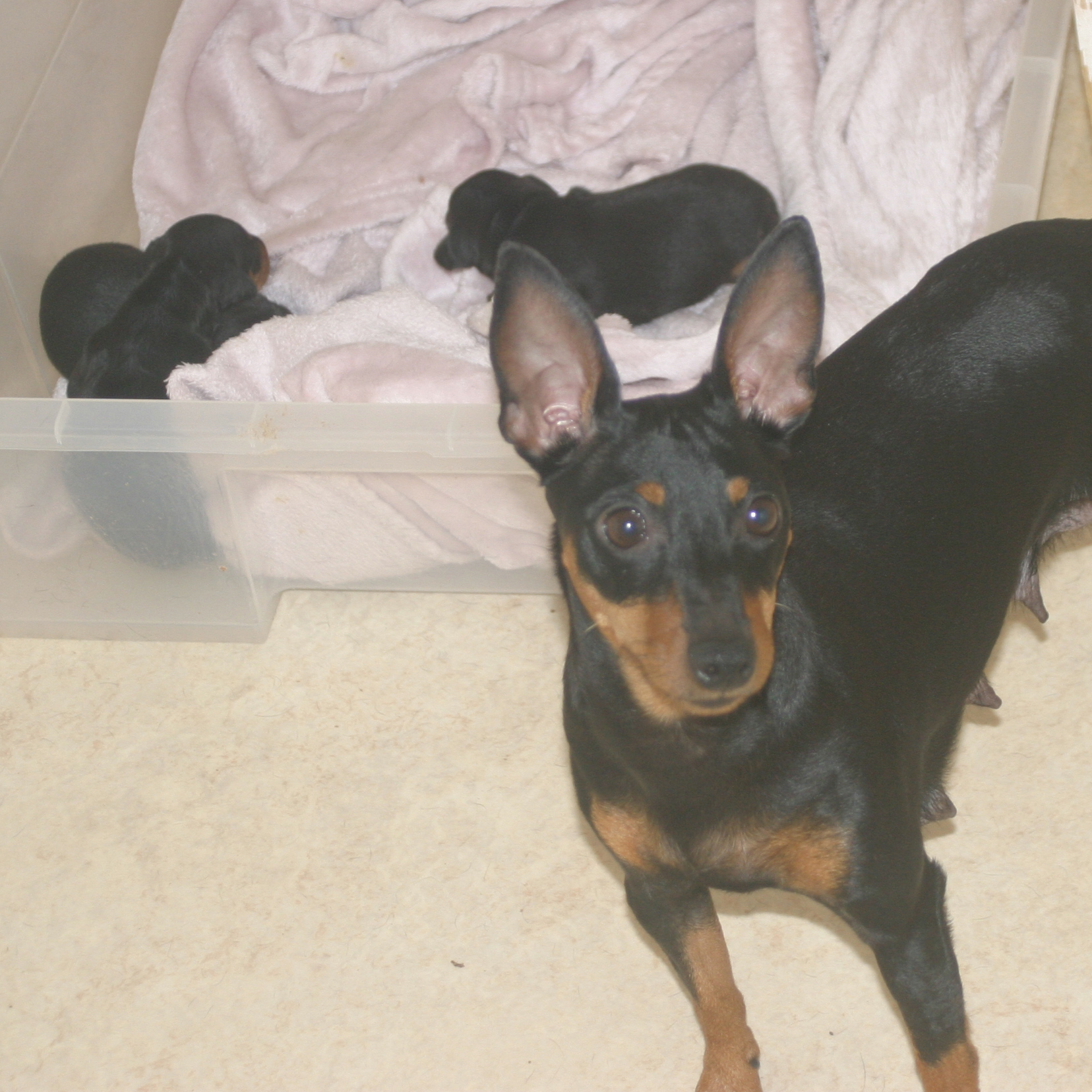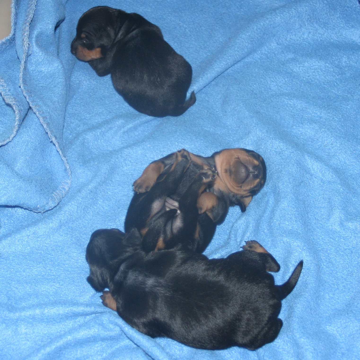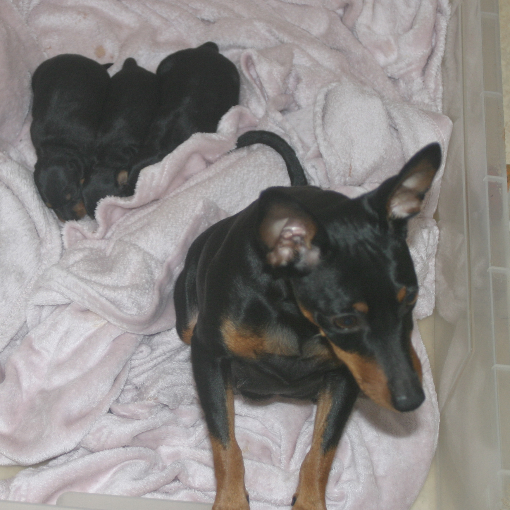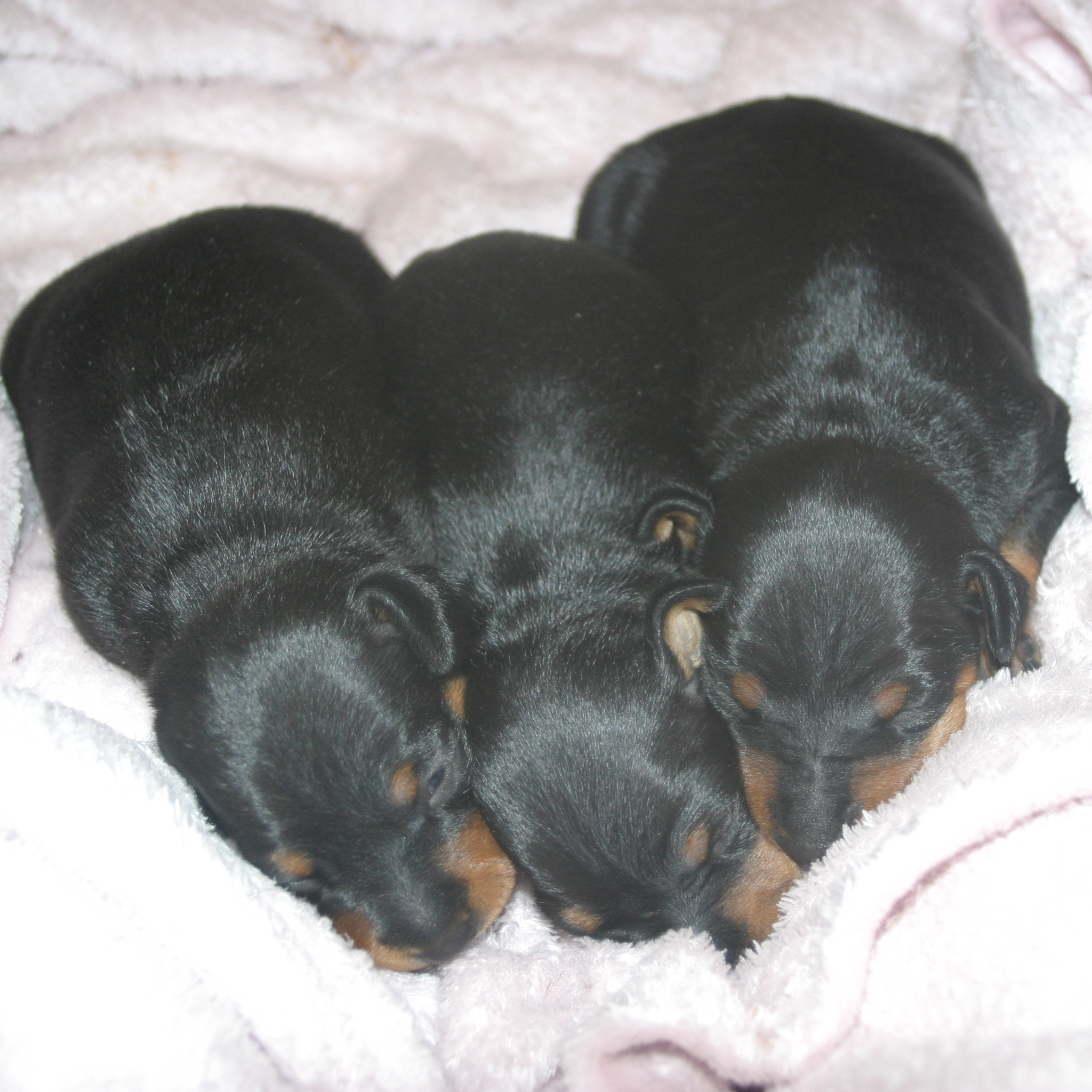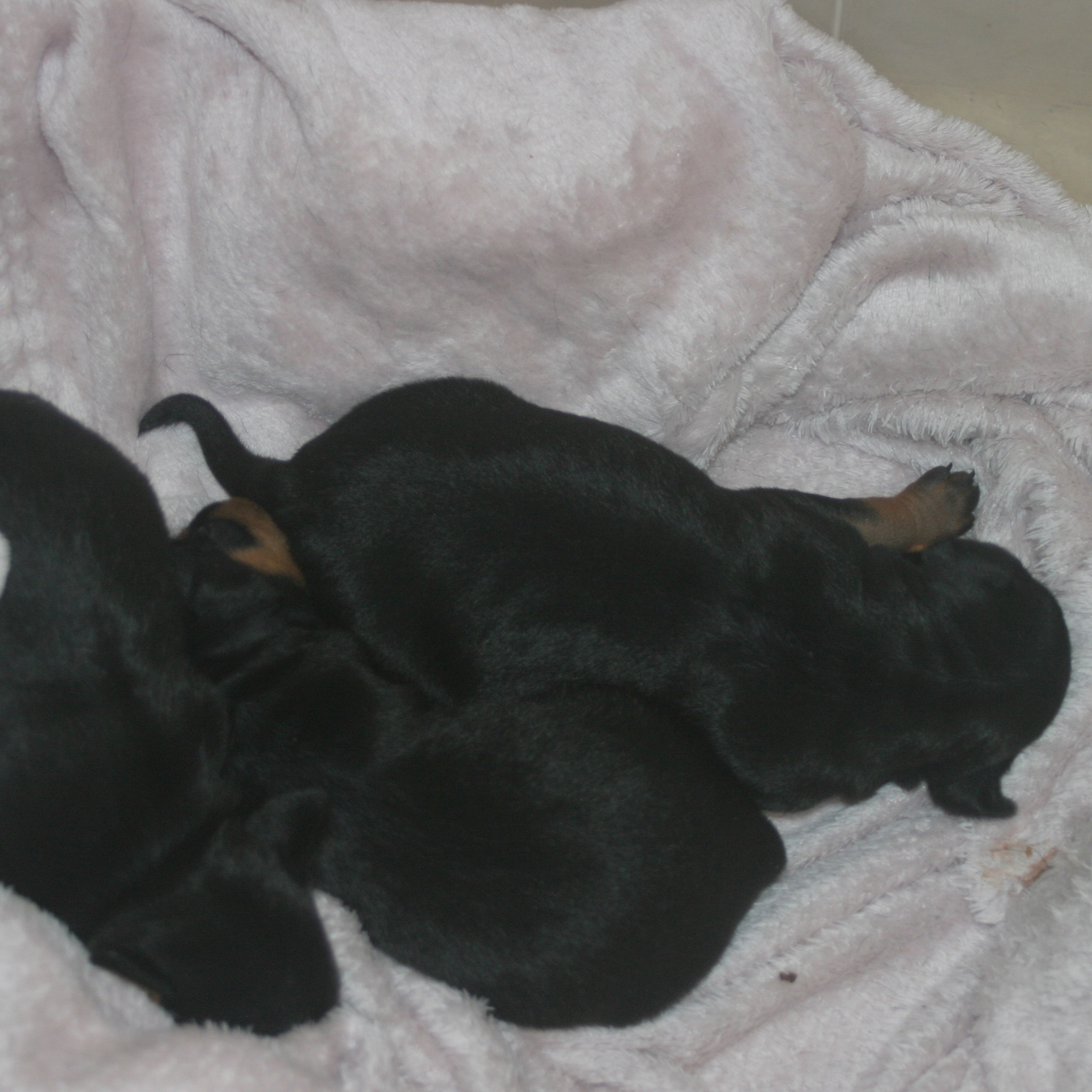 De föddes på dag 61. Det gick som vanligt lätt och smidigt med valpningen. Ingenting märktes att det var på gång utan vi satt lugnt och fikade och hade hundbesök. När de hade gått två timmar senare, så fanns där tre underbara valpar och den sista hade precis kommit ut. Tre tikar blev det.