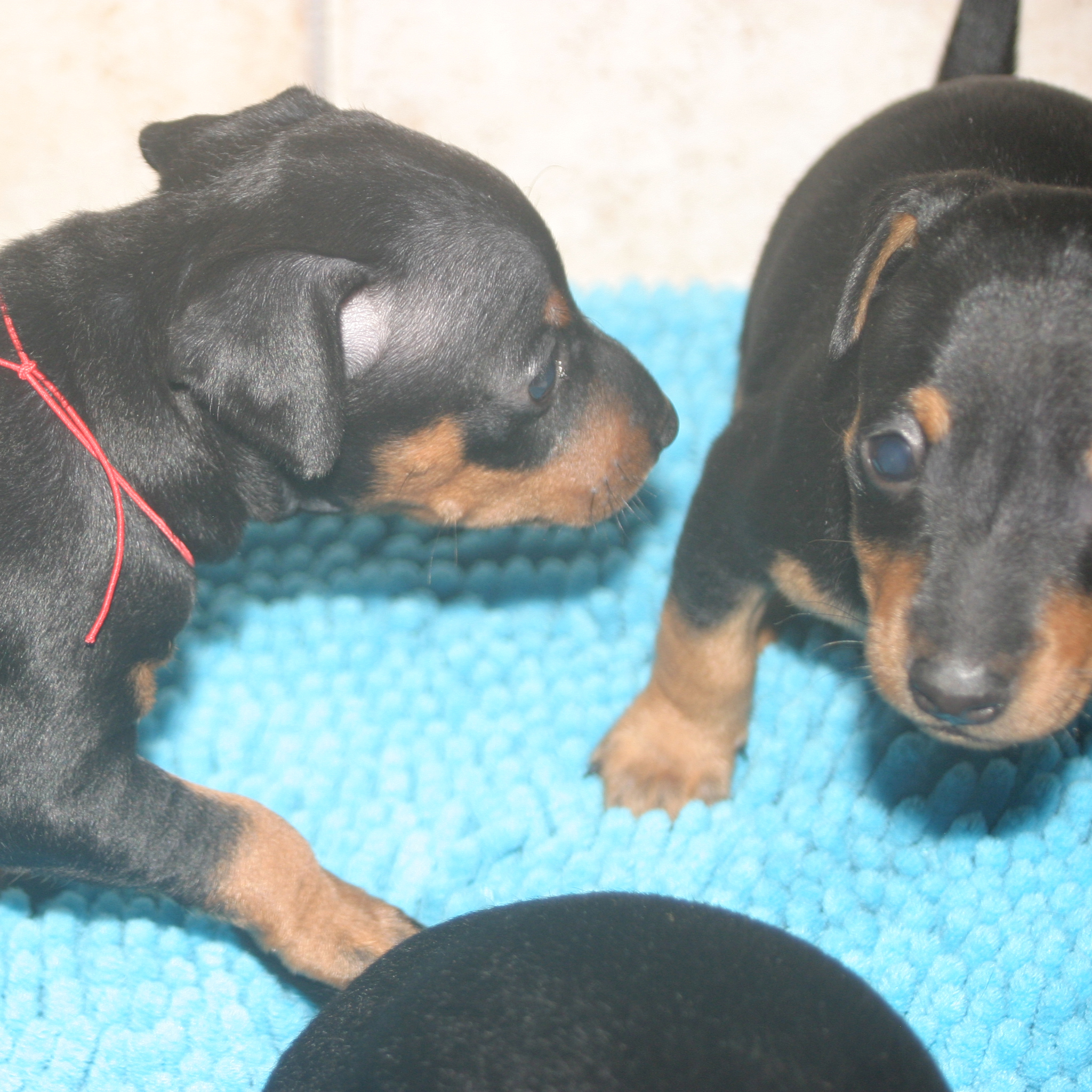 Valparna växer och nu både ser de och hör. I början av veckan kravlar de mest omkring i lådan och i slutet av veckan knallar de omkring i hela valprummet. De leker mest med varandra hela tiden. Nästa vecka blir det dags att lägga in lite leksaker. De är såå gosiga och mysiga. De gillar när man kommer in i rummet. De sover fortfarande rätt mycket. Mamma love har spenderat lite mer tid ute nu, men det är såå varmt så det går inte några längre stunder. De har fått varva lite de senaste dagarna att vara i källaren och uppe när det har varit lite svalare. Alla valparna avmaskades i slutet av veckan och de har gått upp fint i vikt och väger nästan lika mycket alla tre.